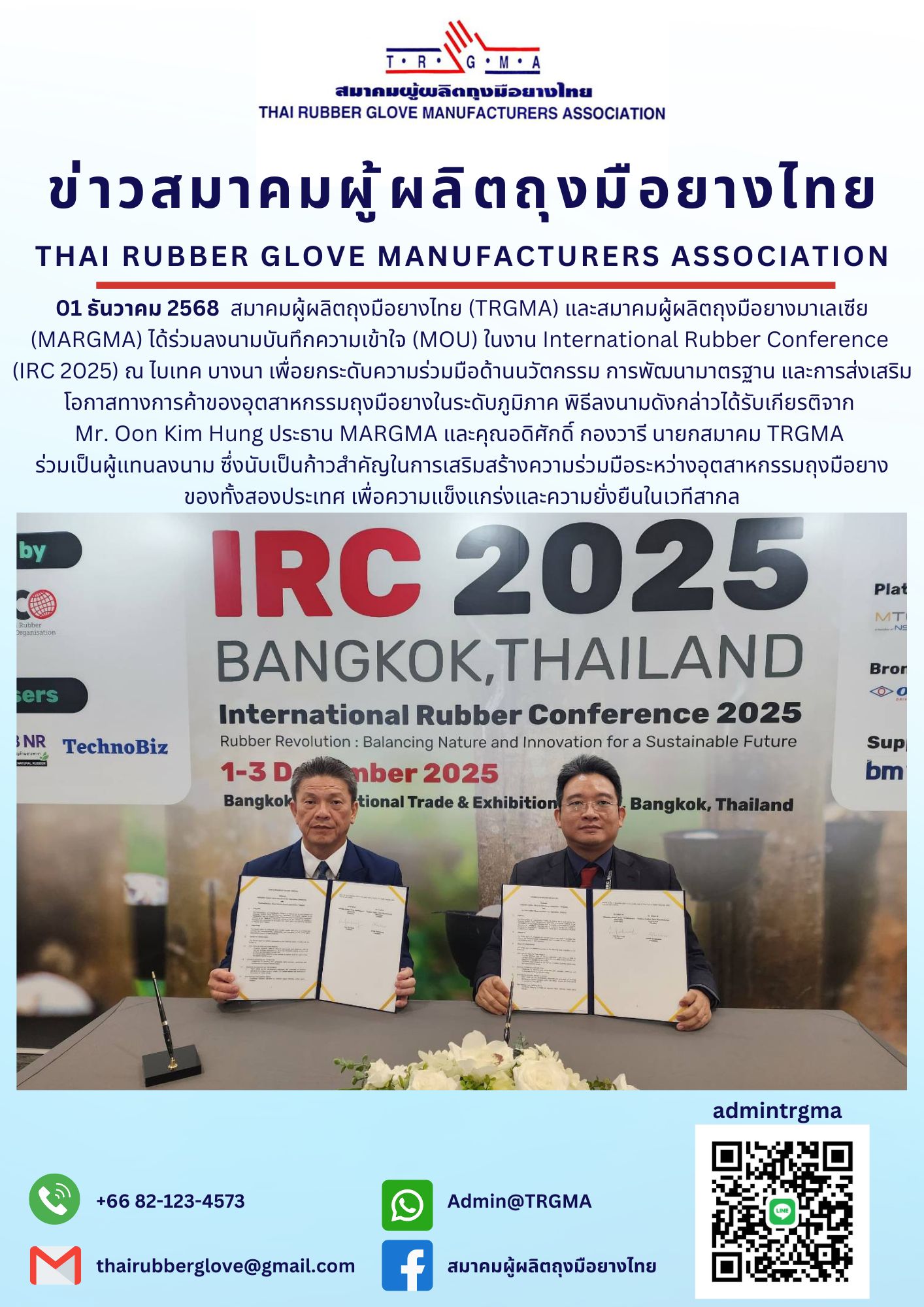 The Thai Rubber Glove Manufacturers Association (TRGMA) was established in June 1st, 2004 as a private nonprofit organization with the aims to strengthen rubber gloves industry in Thailand.